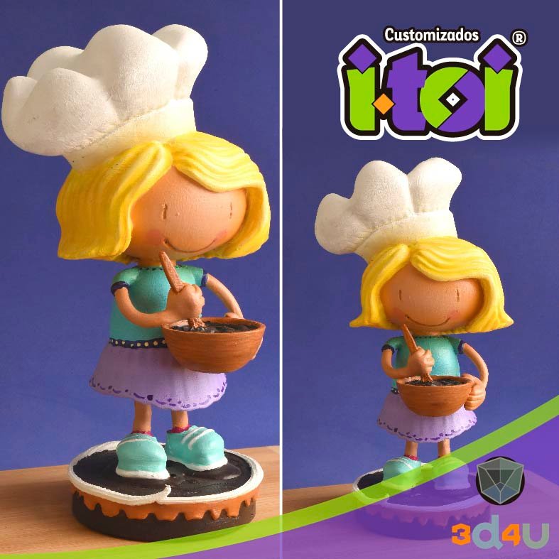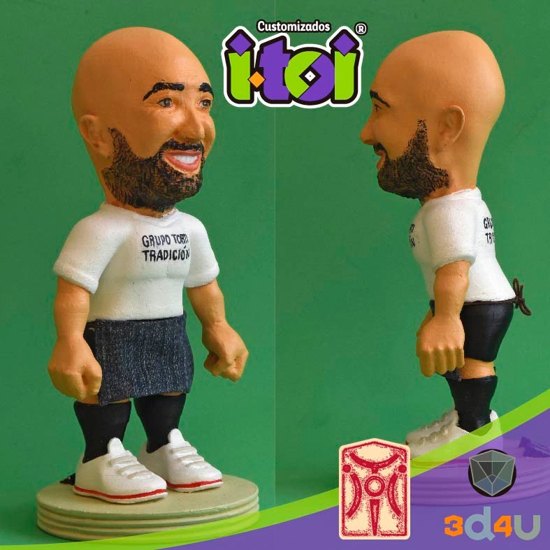 Hacemos tu figura, tu mascota, el escudo de tu equipo favorito, el logotipo de tu empresa o lo que nos pidas en 3D, la modelamos digitalmente, sin utilizar scanner 3D, la imprimimos en impresora 3D y la decoramos a mano.